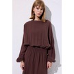 Müslin Beli Büzgülü Elbise Kahverengi Kahverengi