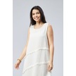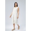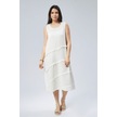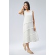 Eteği Volanlı Uzun Elbise Kırık Beyaz
