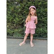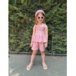 Müslin Kumaş Şortlu Kız Çocuk Takım Pudra