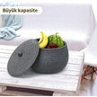 Mutfak, Banyo Ve Ev İçin Halat Hasır Sepet 17x21 Cm Kapaklı Saklama Sepeti Honeypot Gri