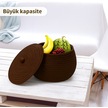 Mutfak, Banyo Ve Ev İçin Halat Hasır Sepet 17x21 Cm Kapaklı Saklama Sepeti Honeypot Kahverengi