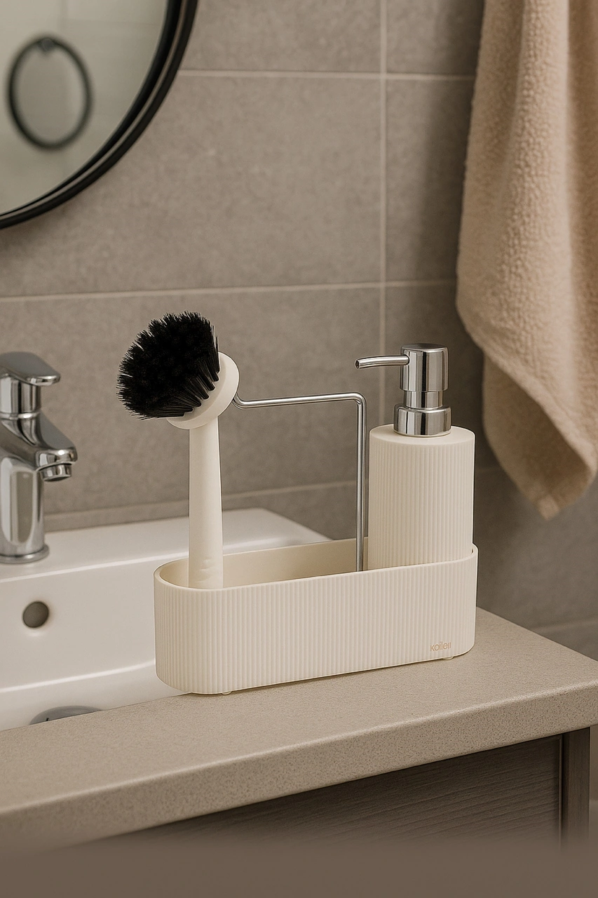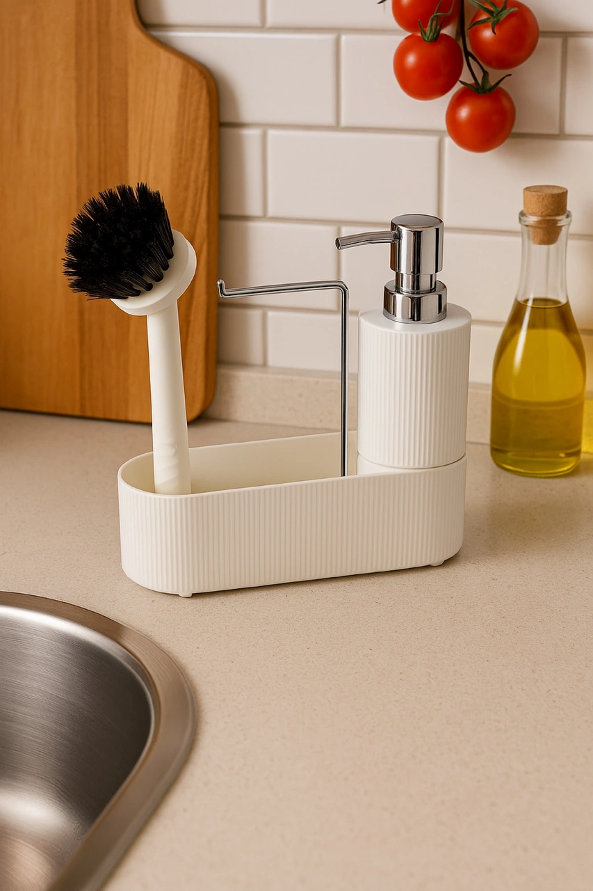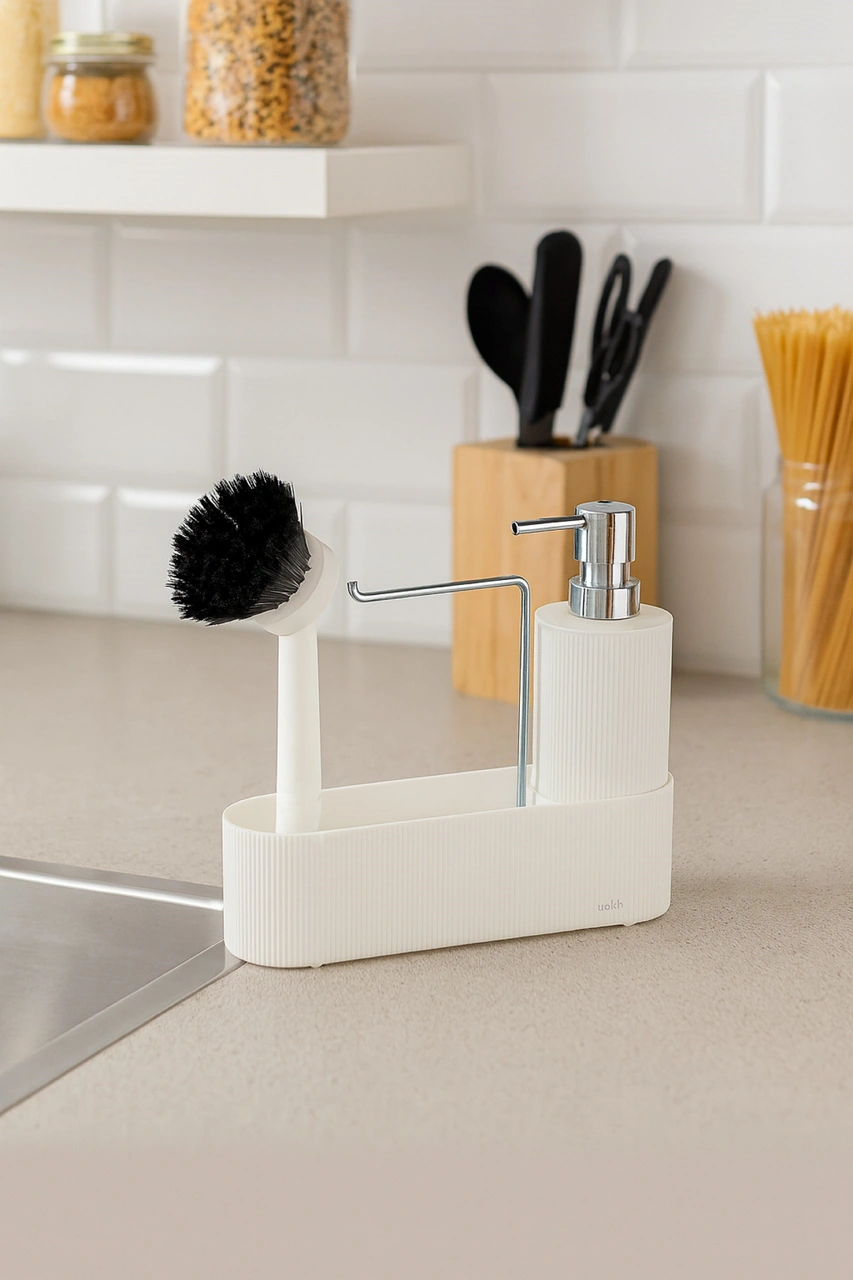 Mutfak Tezgahı Düzenleyici Set Sıvı Sabunluk Ve Bulaşık Fırçası Aparatlı Dc-6776 Beyaz