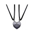 My Topped İki Ruh Tek Kalp Kolye - Siyah + Siyah Silver Gümüş, Dilek Taşı Mıknatıs Çiftler Kolye Gümüş Gümüş