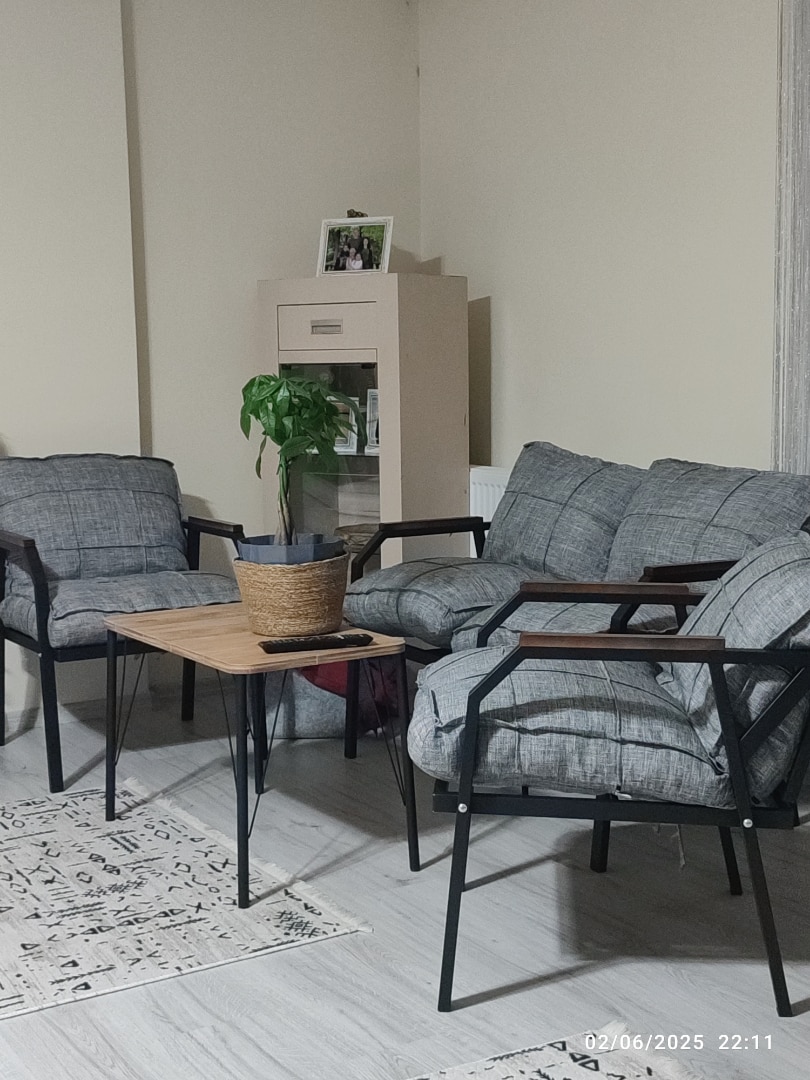 Mygusi Hayal Balkon, Bahçe, Cafe - Metal Kanepe Koltuk Takımı - 2 1 1 Sehaplı Koyu Gri