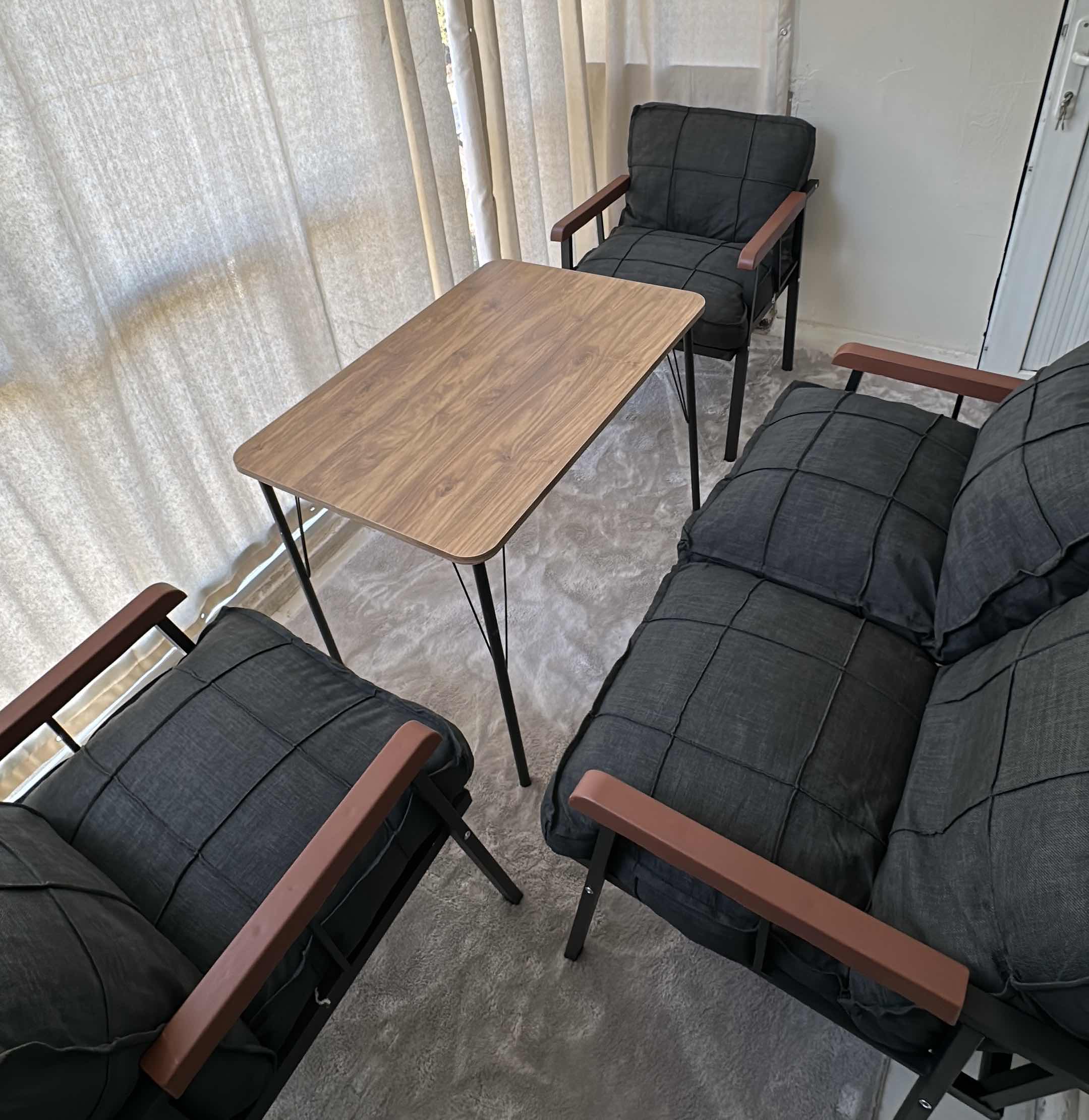 Mygusi Modern Balkon, Bahçe, Cafe - Metal Kanepe Koltuk Takımı - 2+1+1 Masa Antrasit