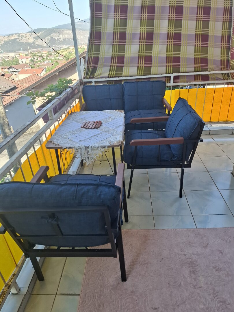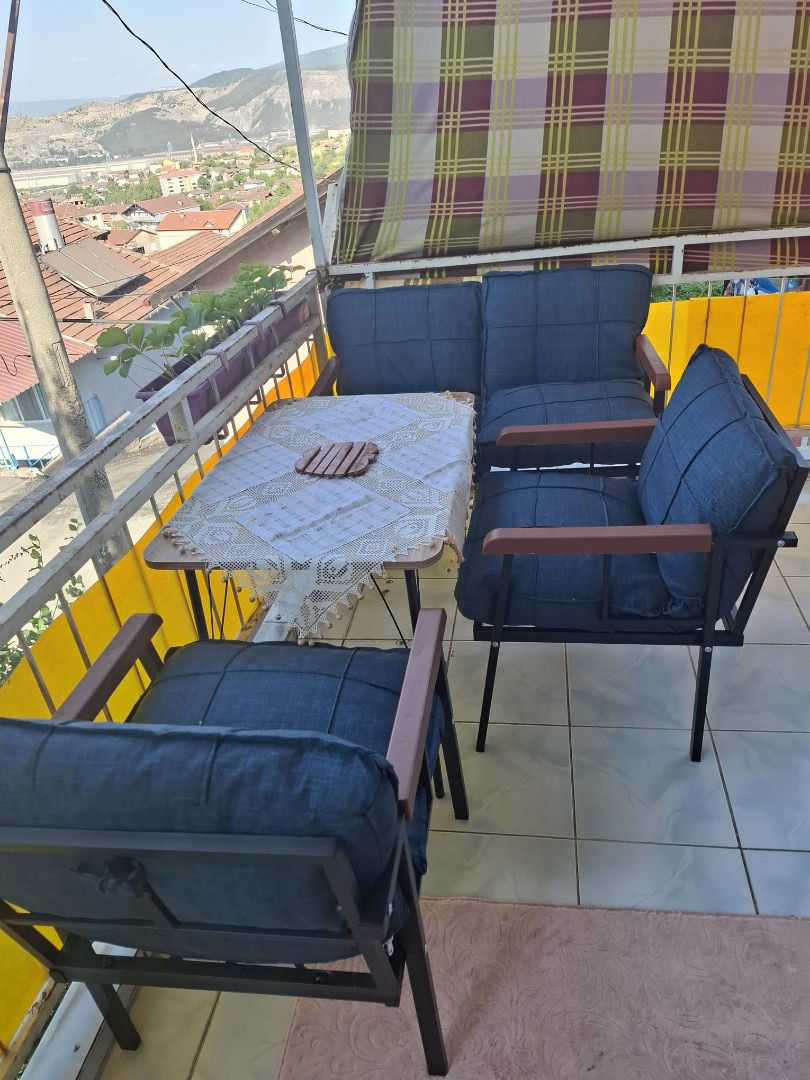 Mygusi Modern Balkon, Bahçe, Cafe - Metal Kanepe Koltuk Takımı - 2+1+1 Masa Lacivert