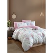 Mystory Home Lastikli Çarşaflı Çift Kişilik Nevresim Takımı Tulip Pembe - Yeşil