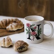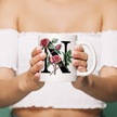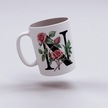 N Baş Harf Kırmızı Güller İle Sarılı Bardak 330 Ml Kişiye Özel Çiçekli Hediye Beyaz