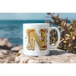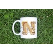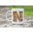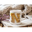 N Harfi Bal Arısı Tasarım Kupa Bardak - Bal Ve Petek Desenli Kişiye Özel Kahve Kupası - Hediyelik Beyaz
