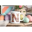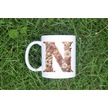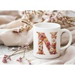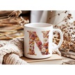 N Harfi Çiçek Desenli Kupa Bardak - Alfabe Harfleri İle Doğal Çiçekli Kupa - Hediye Fikir Beyaz