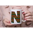 N Harfi Etnik Desenli Kupa - Afrika Tarzı Kahve Çay Kupası - Hediyelik - Black History Beyaz