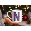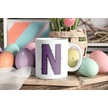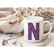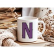 N Harfi Mor Puantiyeli Kupa Bardak - Polka Dot Tasarım Kahve Çay Bardak - Kişiye Özel Hediyelik Beyaz