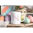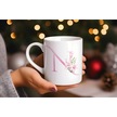 N Harfi Pembe Çiçek Desenli Kupa Bardak - Zarif Pembe Çiçek Tasarım Kahve Çay Kupası - Hediye Beyaz