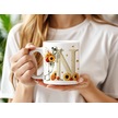 N Harfi Pembe Kareli Kalpli Göz Emojili Kupa Bardak Eğlenceli Kareli Tasarım Kahve Çay Kupası Beyaz