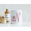 N Harfi Pembe Peri Kızı Figürlü Kupa Bardak Masalsı Çay Kahve Kupası - Kişiye Özel Hediye Beyaz