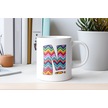 N Harfi Renkli Zigzag Desenli Kupa Bardak - Afrika Tarz Etnik Tasarım Kupa - Kişiye Özel Beyaz
