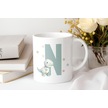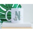 N Harfi Sevimli Dinozor Kupa Bardak - Açık Yeşil Yıldız Detaylı Dino Tasarım - Hediye Beyaz