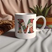 N Harfi Yılbaşı Temalı Kupa Bardak - Yeni Yıl Konsept Yamalı Efekt Tasarım - Noel Hediye Beyaz