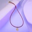 N Harfine Özel Kalp Figürlü 14 Ayar Altın Plakalı Kırmızı Bağlıklı Hediyelik Kolye-633harf N