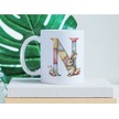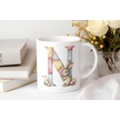 N Harfli Tavşan Kupa - Patchwork / Yamalı Desenli İsme Özel Kupa - Pastel Vintage Tarz Hediyelik Beyaz