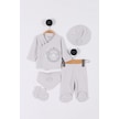 Nakış Desenli Müslin Erkek Bebek Hastane Çıkışı Bebek Kıyafetleri Yenidoğan Hastane Çıkış Seti 5 Li Gri