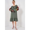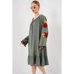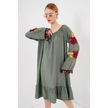 Nakışlı Midi Elbise 2531 - Haki Haki
