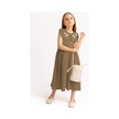Nakışlı Roba Yaka Keten Kız Çocuk Elbise Caramel Caramel Kahverengi