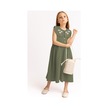 Nakışlı Roba Yaka Keten Kız Çocuk Elbise Haki Haki