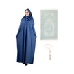 Namaz Elbisesi Eşarp Seccade Tesbih Set, İslami Giyim Takım Ferace Turban Şal İndigo