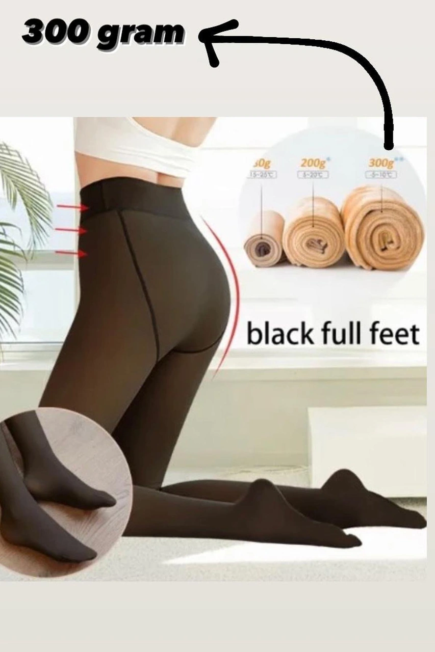 Nana & Mayka Moda Kadın Siyah İçi Polarlı Termal Külotlu Çorap Kışlık Peluşlu, Sıcak Tutan, Kalın Siyah