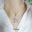 Nano Siyah Taşlı Yapraklı Kelebek Gümüş Kolye-Silver