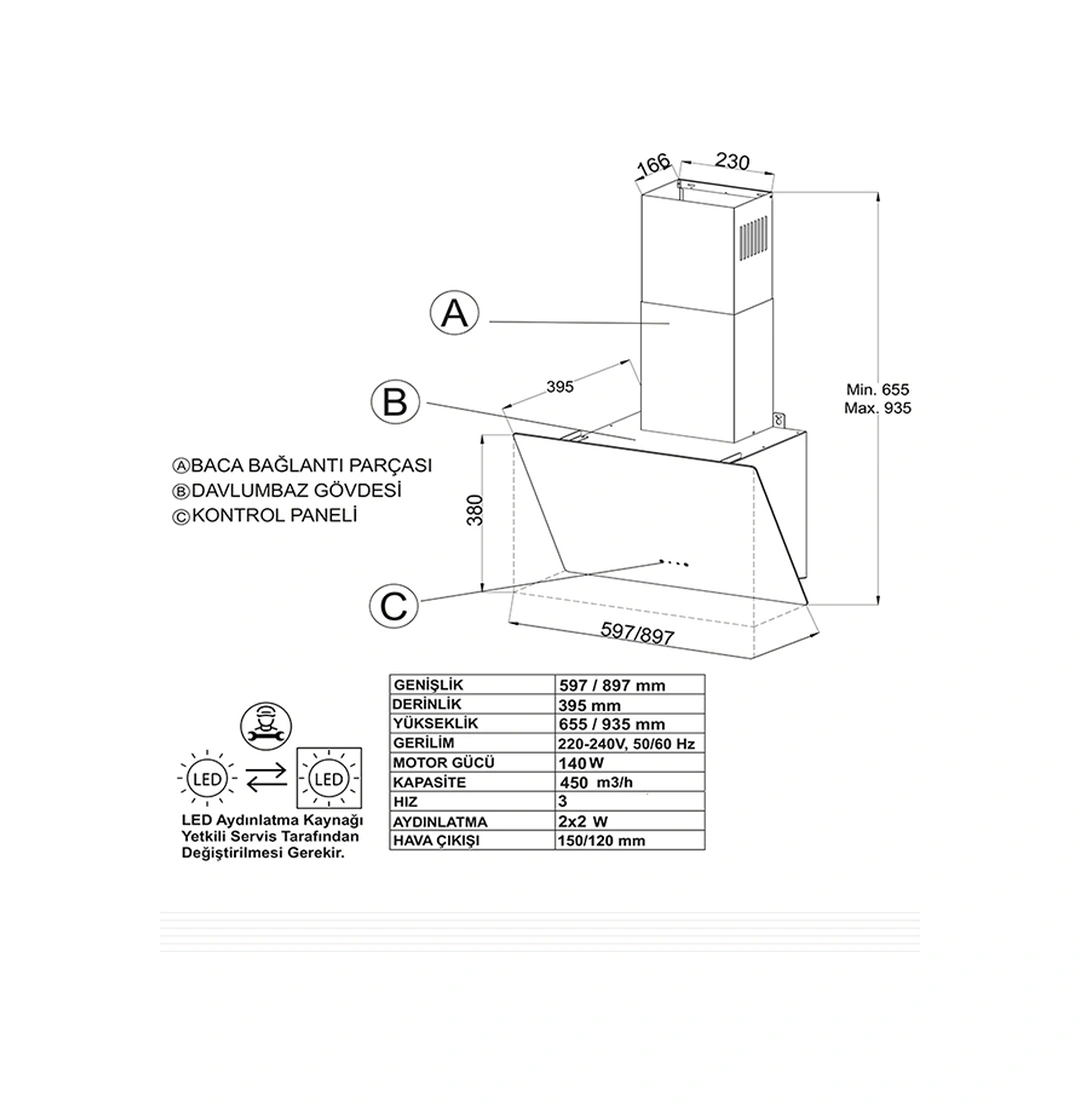 Teka ATV-90 Duvar Tipi 90 CM Davlumbaz