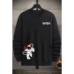 Nasa Baskılı Bisiklet Yaka Sweatshirt Siyah
