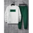 Nasa Unkown Eşofman Takımı Sweatshirt Jogger - Beyaz Nefti Yeşil Baskılı Şardonlu Bisiklet Yaka Beyaz Nefti Yeşil