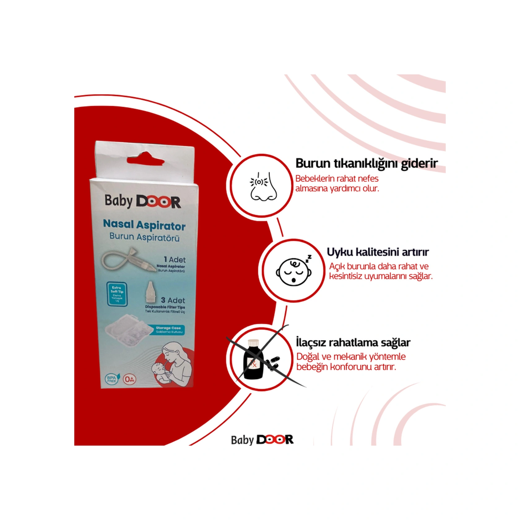 Nasal Burun Aspiratörü Bebek Saklama Kutulu Burun Temizleme Aparatı 3 Adet Yedek Uç