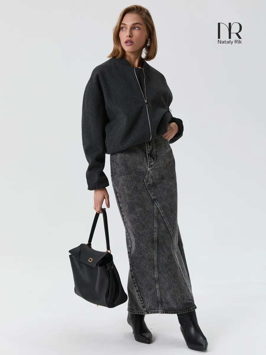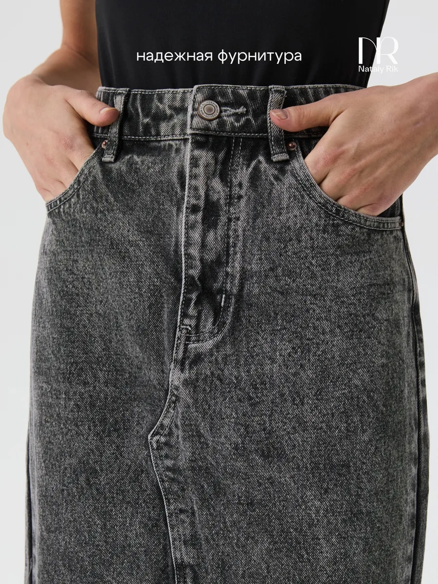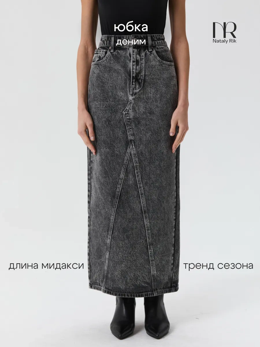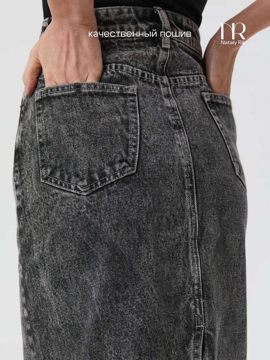 Nataly Rik Yırtmaço Detaylı Uzun Kot Etek 328113306 Gri