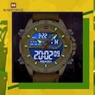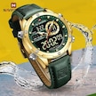Naviforce Nf9208 Çift Ekran Kuvars Analog Lcd Dijital Erkek Saat Deri Kayış Gümüş - Yeşil Çok Renkli