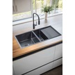 Naz Serisi %100 Krom 95x45 İki Göz Paslanmaz Mutfak Eviyesi, Mutfak Lavabosu Sifon Dahil Siyah