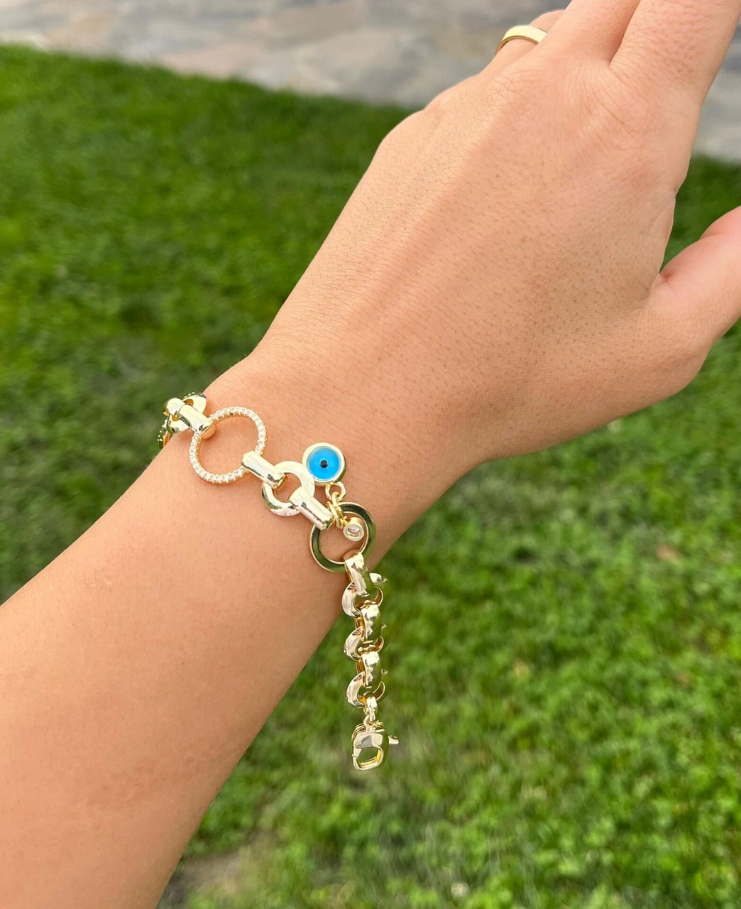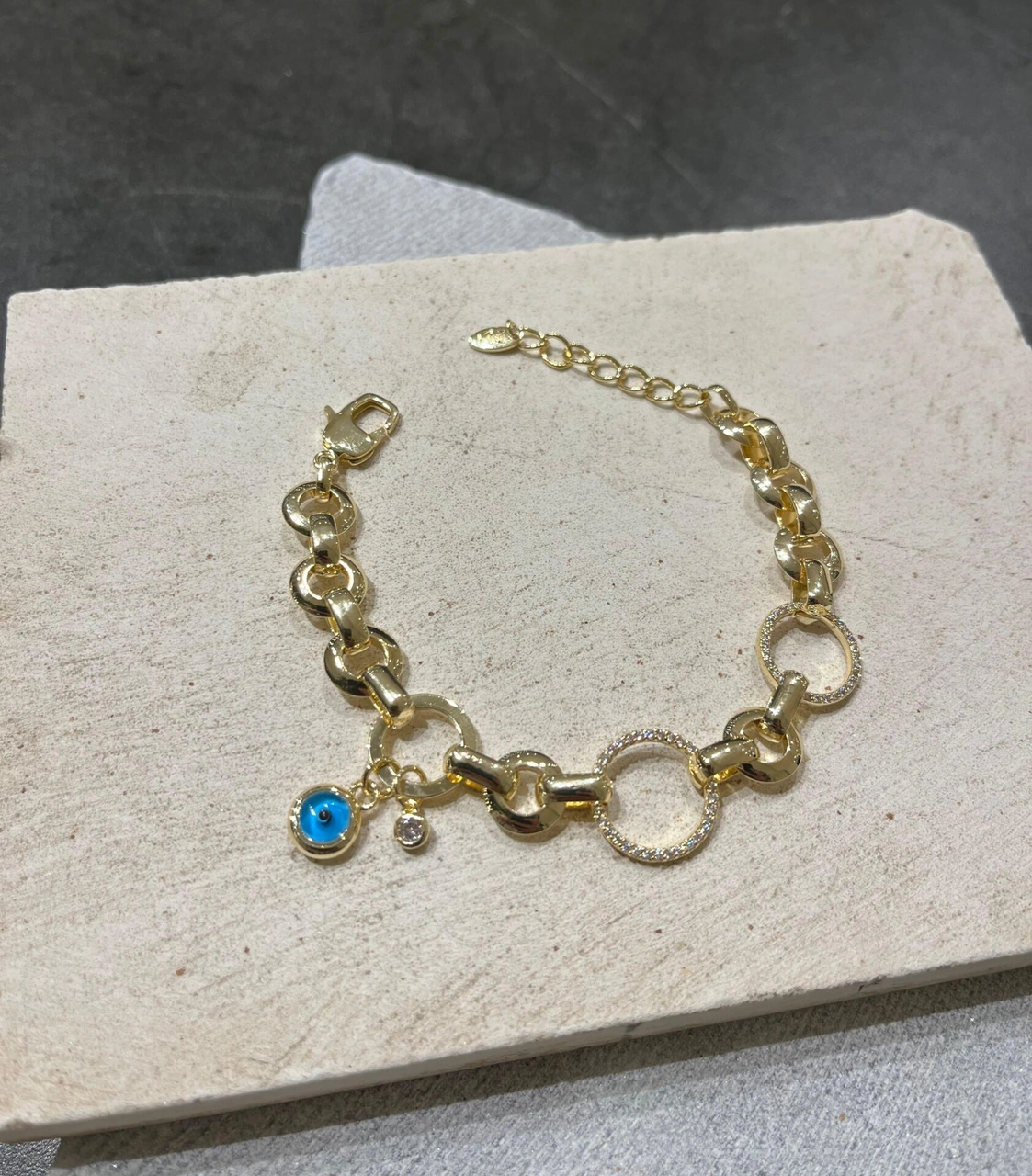 Nazar Boncuğu Ve Taşlı Halka Bileklik Çok Renkli