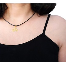 Nazlı İsmine Özel 14 Ayar Altın Plakalı Siyah Bağlıklı Araba Figürlü Hediyelik Kolye-630isim Nazlı
