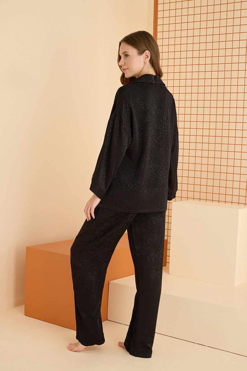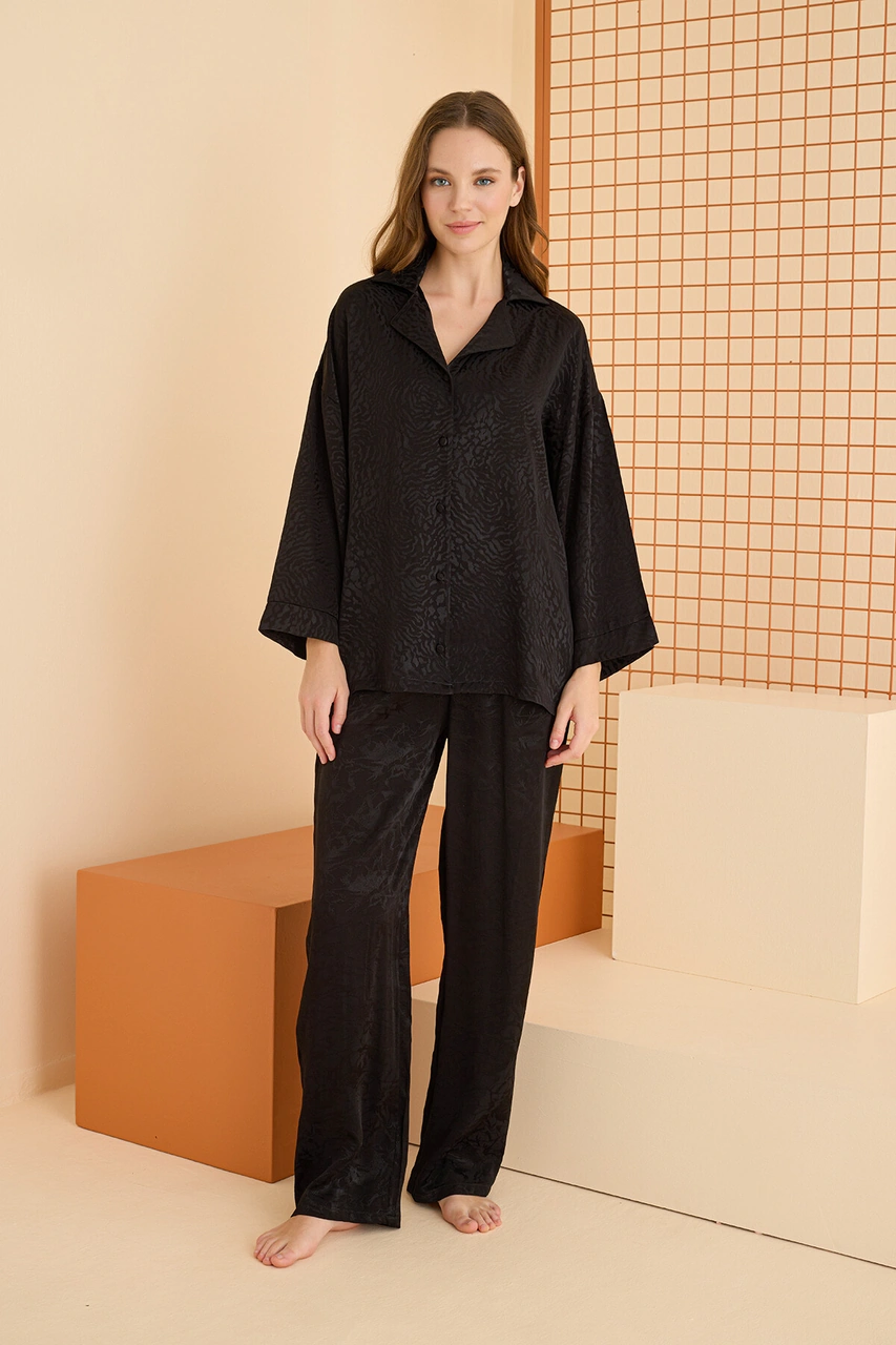 Nbb Kadın Siyah Önden Düğmeli Pijama Takım Siyah