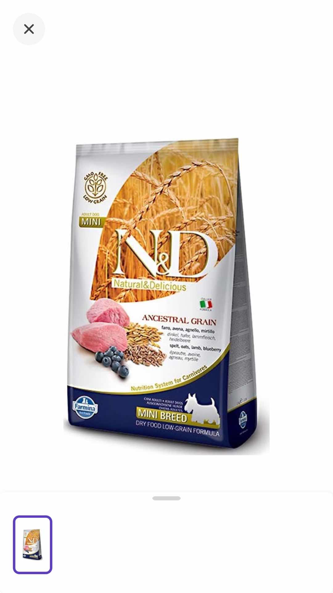 N&D Kuzu Etli ve Yaban Mersinli Düşük Tahıllı Küçük Irk Yetişkin Köpek Maması 7 KG