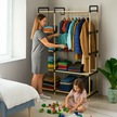 Ne-03 Modüler Raflı %100 Masif Ahşap Elbise Askısı Açık Gardırop Ahşap