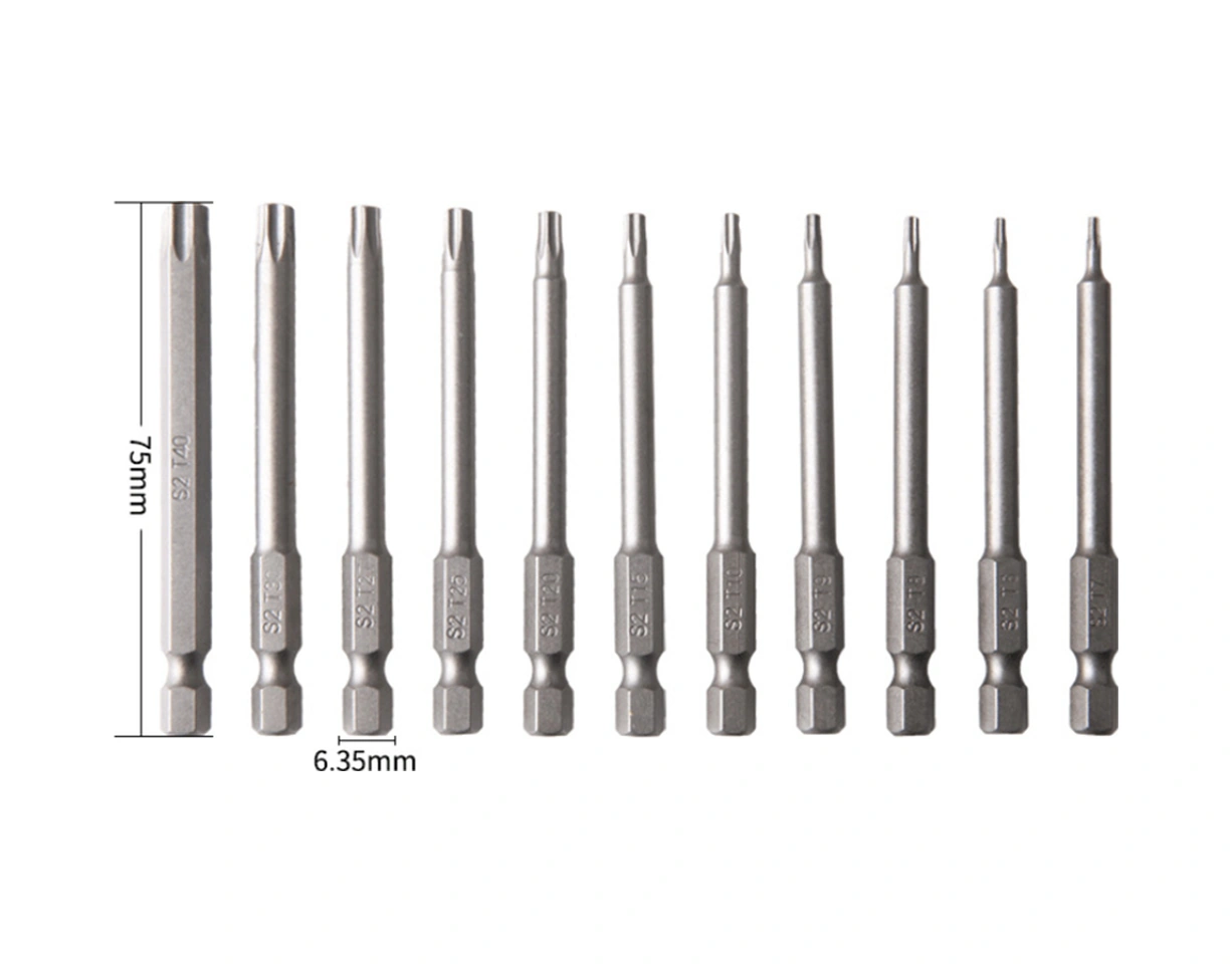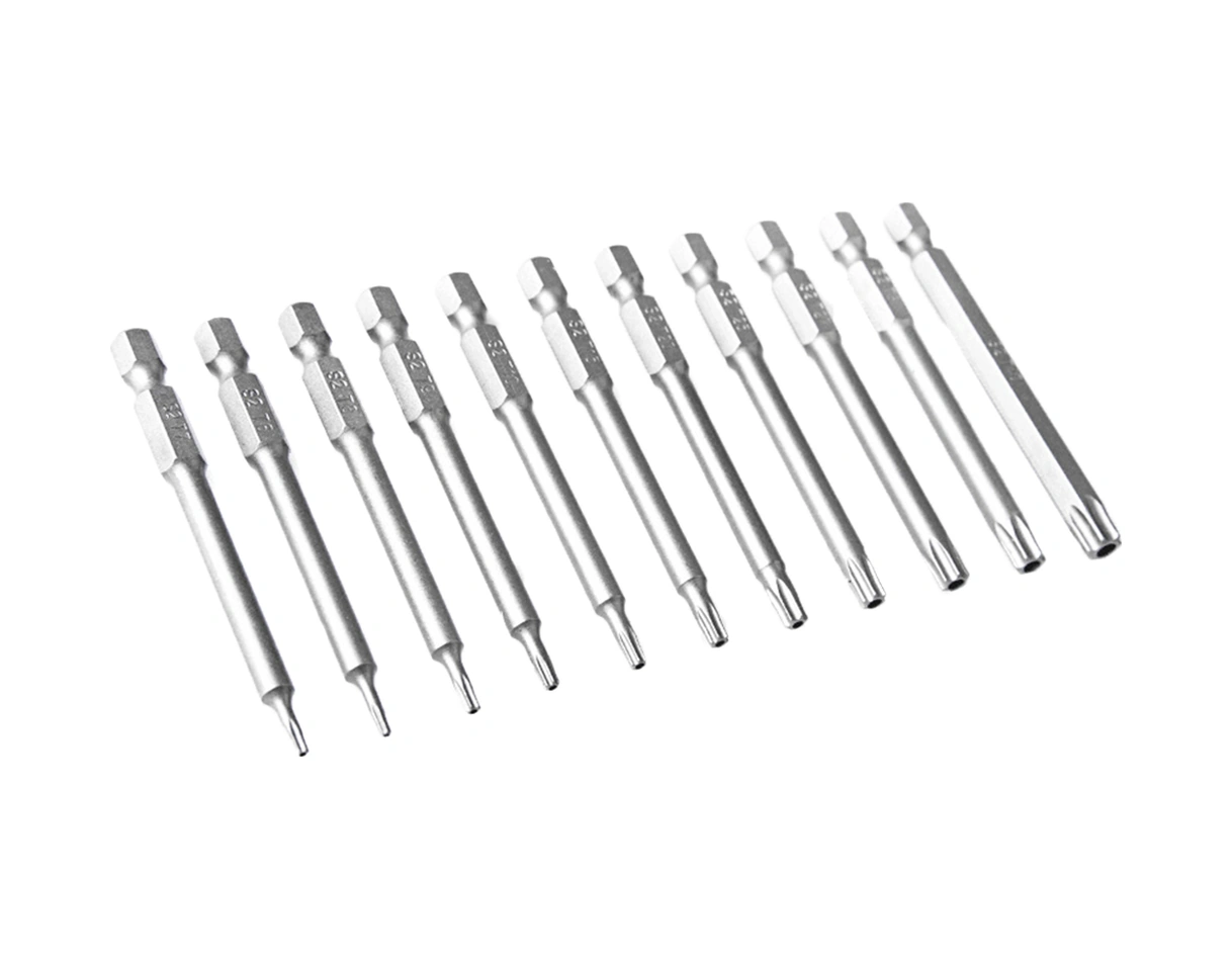 Neevoyu 11 Adet Chrom Vanadyum Çelik 75mm Yıldız Tipi Delikli Tornavida Ucu Seti - Fırça Sandalye Uçları Kombinasyonu