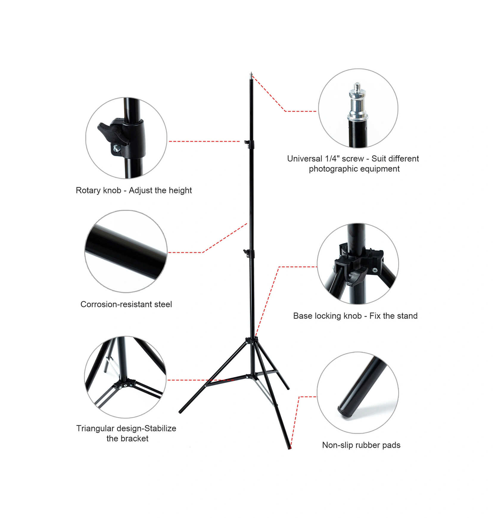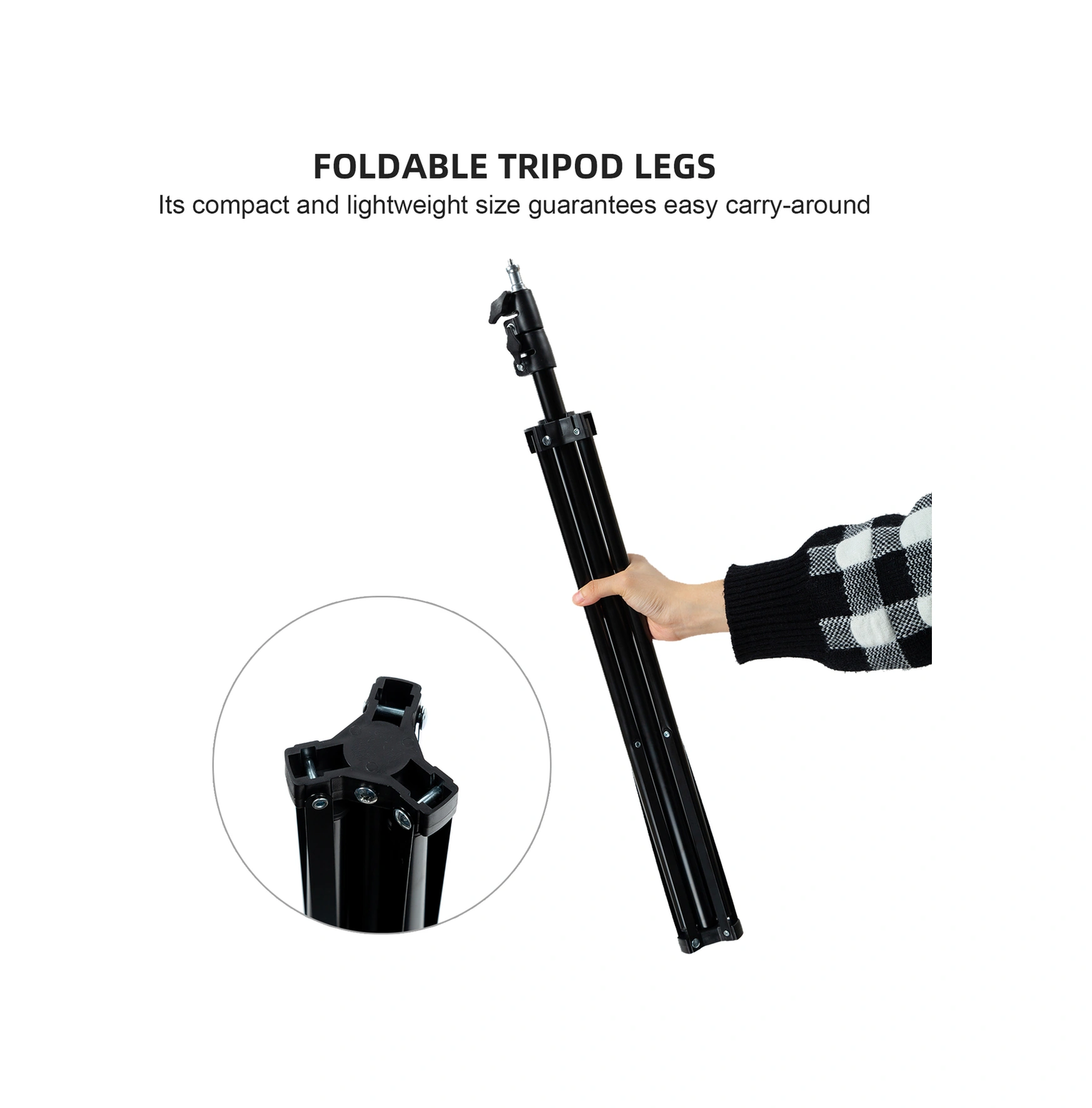 Neevoyu 2.1m Çelik Isı Ölçer Tripodu - Yüksekliği Ayarlanabilir, Katlanabilir, 1/4 Vida - Sokağa, Ofis, Mağaza Kullanıma Uygun Siyah