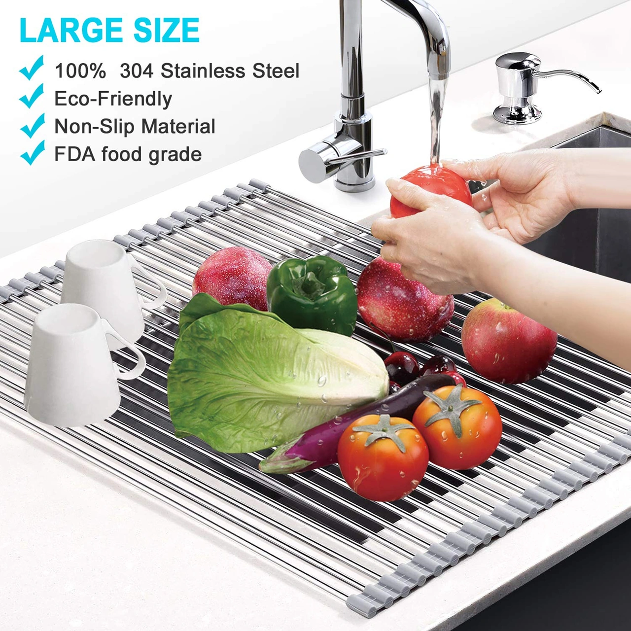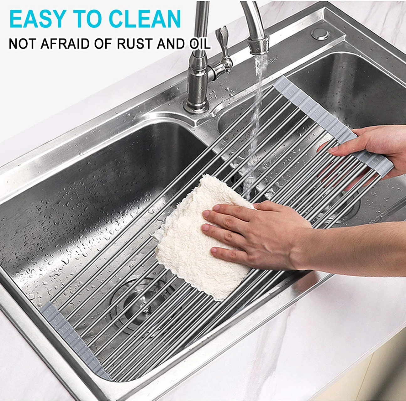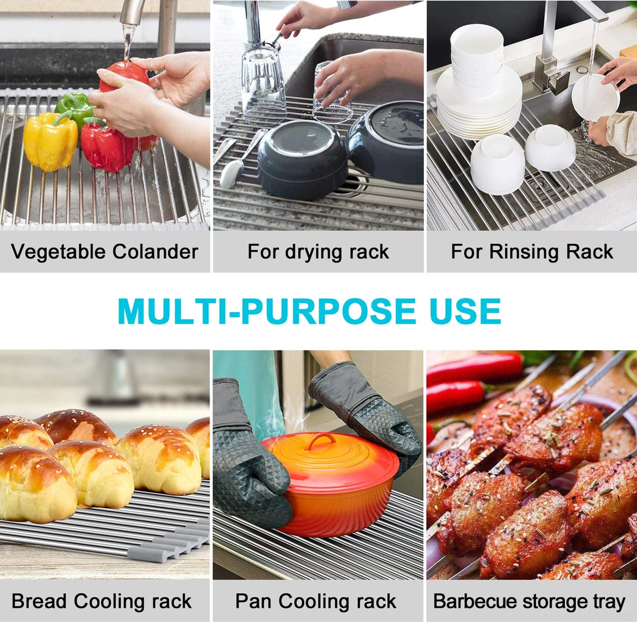Neevoyu Çift Katlı Gıdalar Ve Tabaklar İçin Kollapsible 304 Çelik Silikon Sulama Rafı, Yük Dayanımı Ve Isı Direnci, Mutfak Depolama Aleti Gri