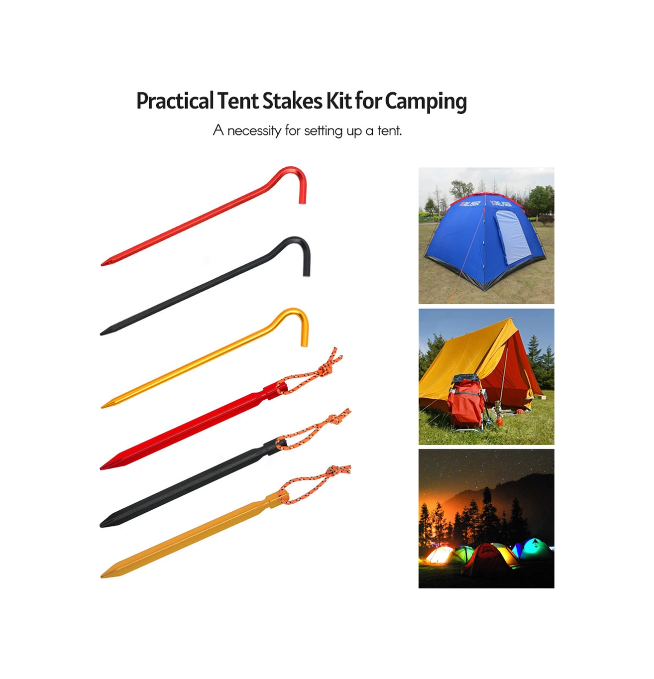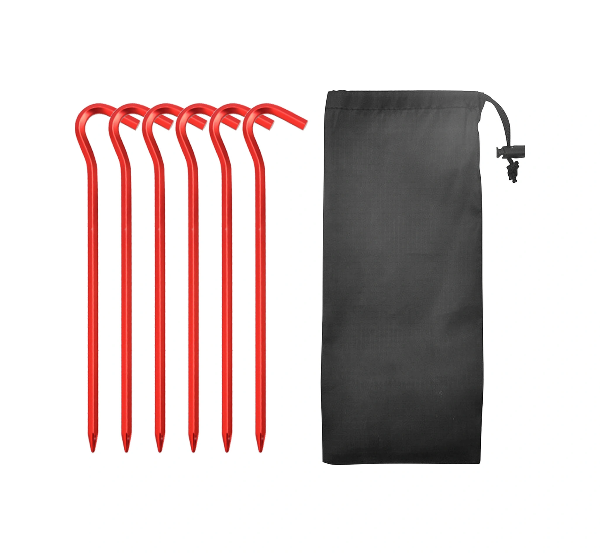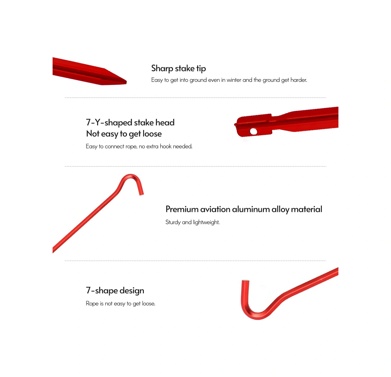 Neevoyu Kamp Çadırı Alüminyum Toprak Çivi 6 Adet - Dayanıklı, Hafif, Dökülme Engeli - Kırmızı 7 Tipi + Depolama Çantası Kırmızı