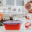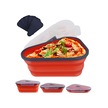 Neevoyu Kırmızı Gıda Kalitesi Silikon Pizza Kutusu - Yeniden Kullanılabilir, 5 Bölmeli, Mikrodalga & Bulaşık Makinesine Uygun, Leak-proof, Foldable Turuncu - Kırmızı