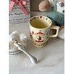 Neevoyu Seramik Kedi Şekilli Kadeh Ve Kaşık Seti, Askı Yüklü, Glaze Kaplama, 300 Ml, Beyaz, Kızlar İçin Hediye Beyaz