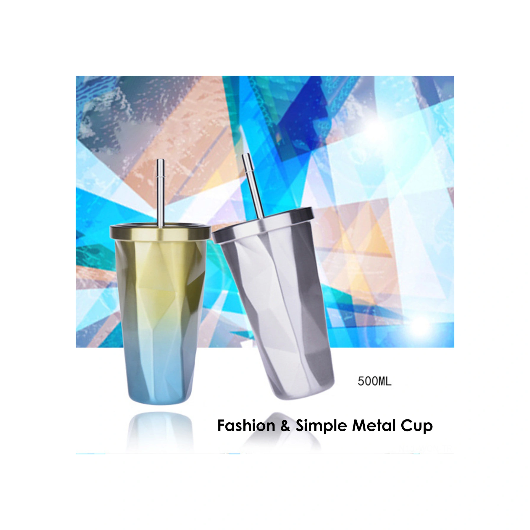 Neevoyu Stahl Çift Katlı 500ml Termos Bardak, İbrikli, Renkli Desenli, Isı Ve Soğuk Saklama Özelliği